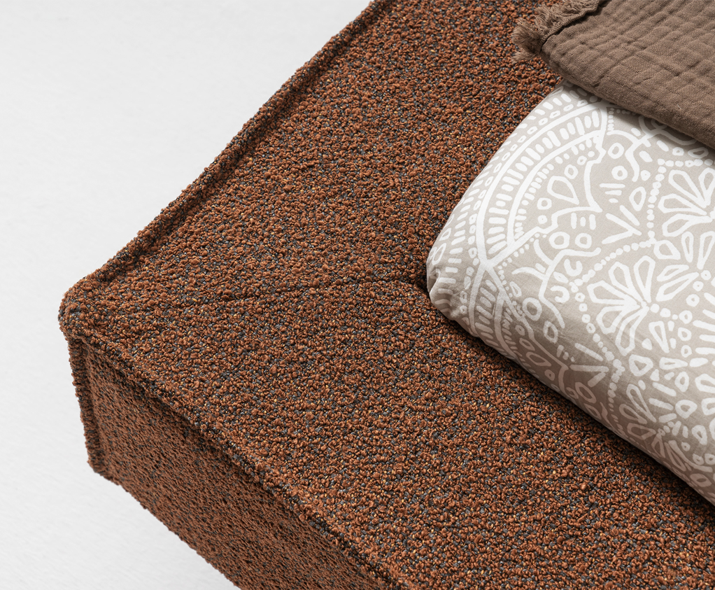 Dieses Futonbett trifft die Balance zwischen Schlichtheit und Modernität. Das Rückenteil scheint durch seine Breite das Bett einzurahmen, es reicht seitlich über die Liegefläche hinaus und bis zum Boden. Durch seine geringe Höhe scheint es fast zu schweben. Der Bezug ist aus Bouclé und vom Rahmen abnehmbar. Das Gestell des THORS ist aus Metall.