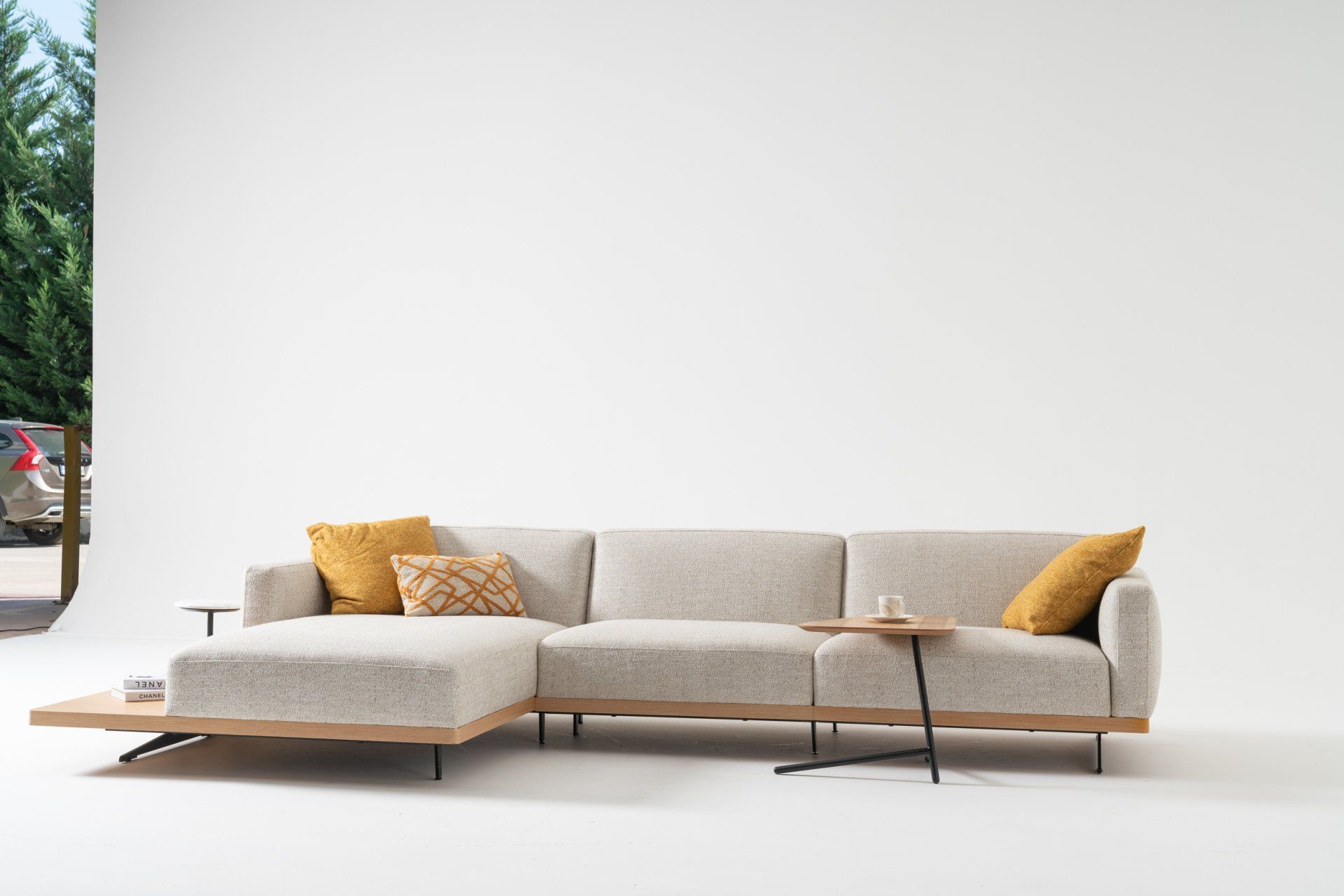 Das CRATE RELAX Sofa ist anhand eines horizontalen Konzepts durch eine stark strukturierte Plattform unterstrichen: ein dynamisches Element, das sich über die Seiten des Sofas hinaus erstreckt und eine Auflagefläche schafft. Zudem können auf der Plattform funktionelle und tragende Elemente angebracht werden, die weitere Anpassungsmöglichkeiten bietet.